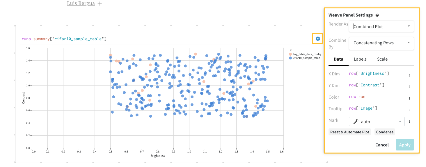 Suppose you want to query a W&B Table. In your training code you log a table called "cifar10_sample_table":