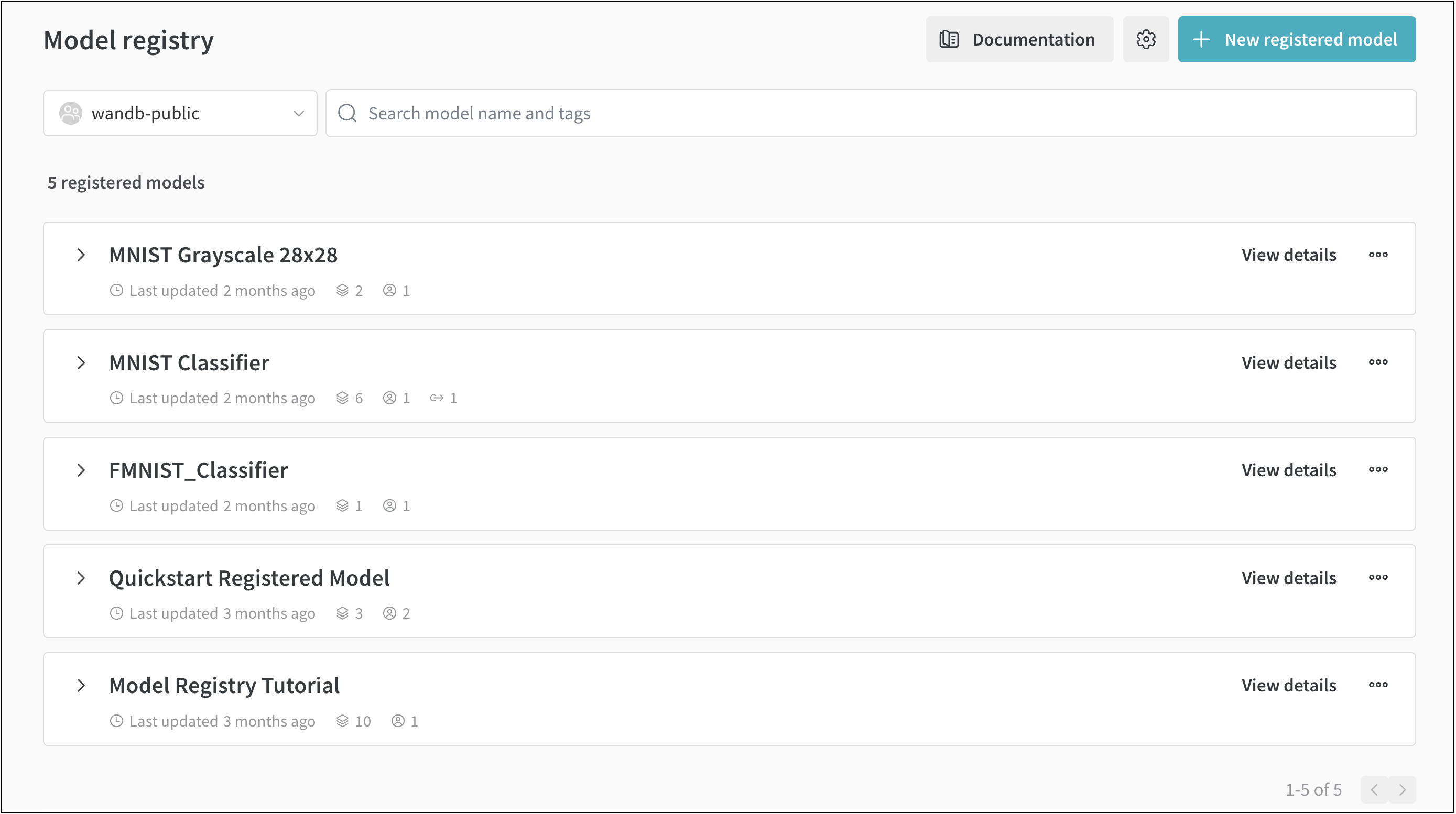 W&B Model Registry は、チームの訓練済みモデルを収容する場所であり、ML プラクティショナーがプロダクション候補として下流のチームやステークホルダーに提供できます。ステージングされたモデルや候補モデルを収容し、それに関連するワークフローを管理するために使用されます。