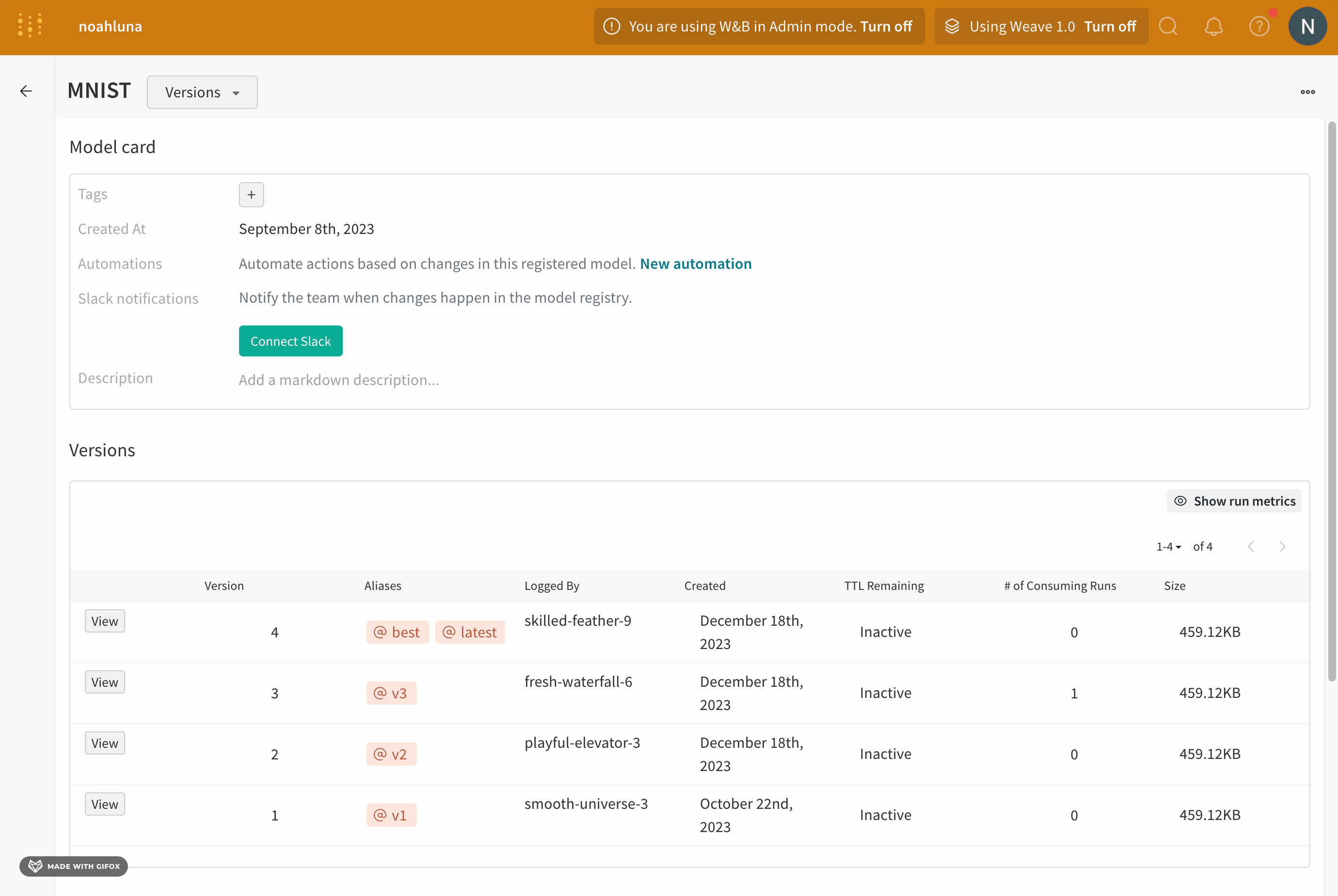 指定したregistered-model-nameが既に存在しない場合、W&Bは登録されたモデルを自動的に作成します。