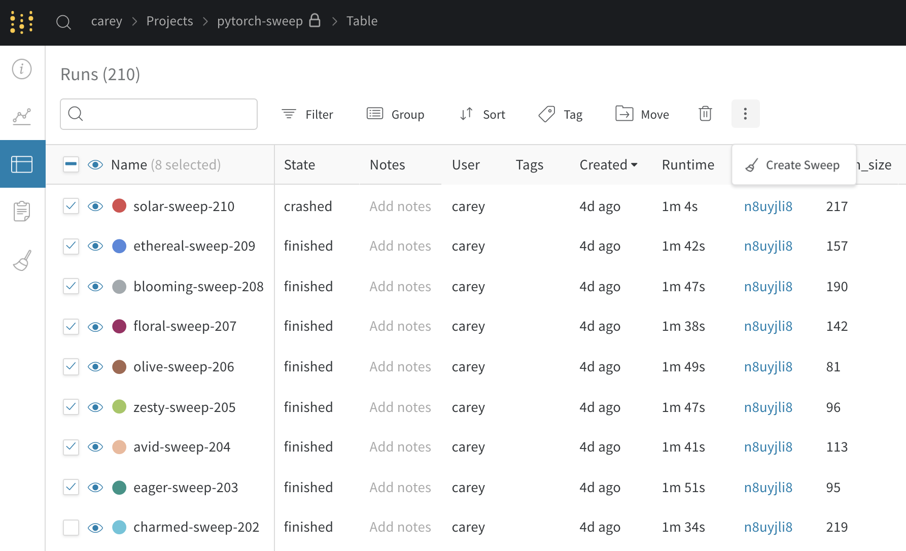 これで sweep はサーバー上に設定されます。run を開始するには、1 台以上のエージェントを起動するだけです。